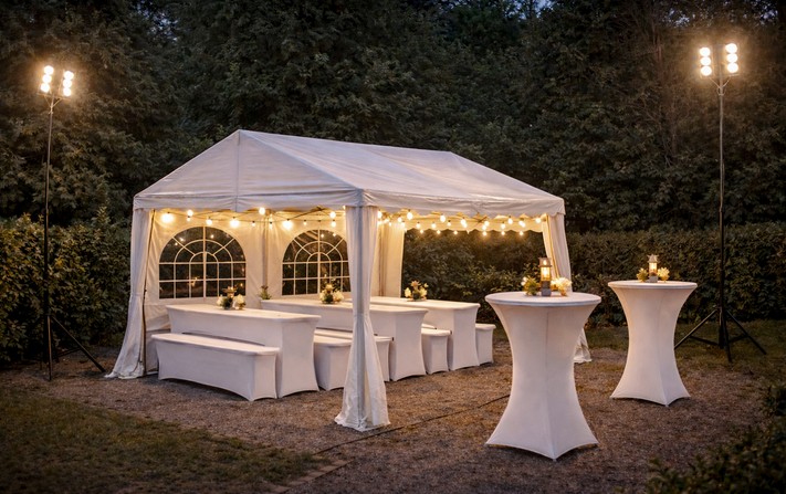 3x4 mtr.-Zelt mit Raum für max. 24 Stehplätze oder 17 Sitzplätze oder 2 Bierzeltgarnituren